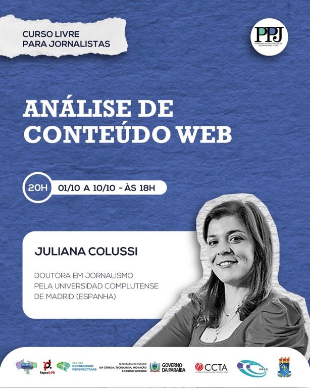 PPJ/UFPB oferece curso gratuito de análise de conteúdo web com professora da Universidad Rey Juan Carlos