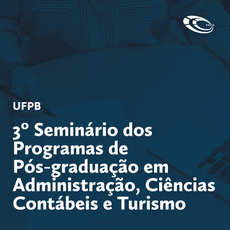 O Programa de Pós-graduação em Administração (PPGA) da Universidade Federal da Paraíba (UFPB) em parceria com o Programa de Pós-graduação em Administração (PROPAD) da Universidade Federal de Pernambuco (UFPB) realizará o 3º Seminário dos Programas de Pós-graduação em Administração, Ciências Contábeis e Turismo do Norte/Nordeste.