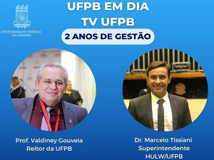 O Programa “UFPB em Dia”, da TV UFPB, entrevista nesta quinta-feira (15) o Reitor da Universidade Federal da Paraíba (UFPB), Prof. Valdiney Gouveia, e o Superintendente do Hospital Universitário Lauro Wanderley (HULW), Dr. Marcelo Tissiani, para apresentar à comunidade e à sociedade as ações realizadas durante esses dois anos das respectivas gestões.