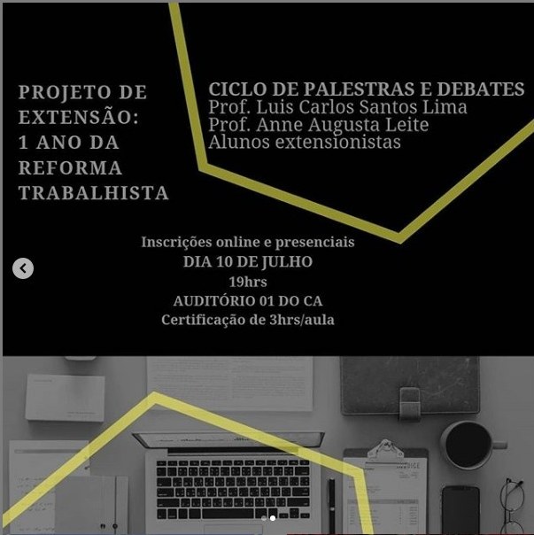 Ciclo de palestras e debates do projeto de extensão “1 ano da Reforma Trabalhista”