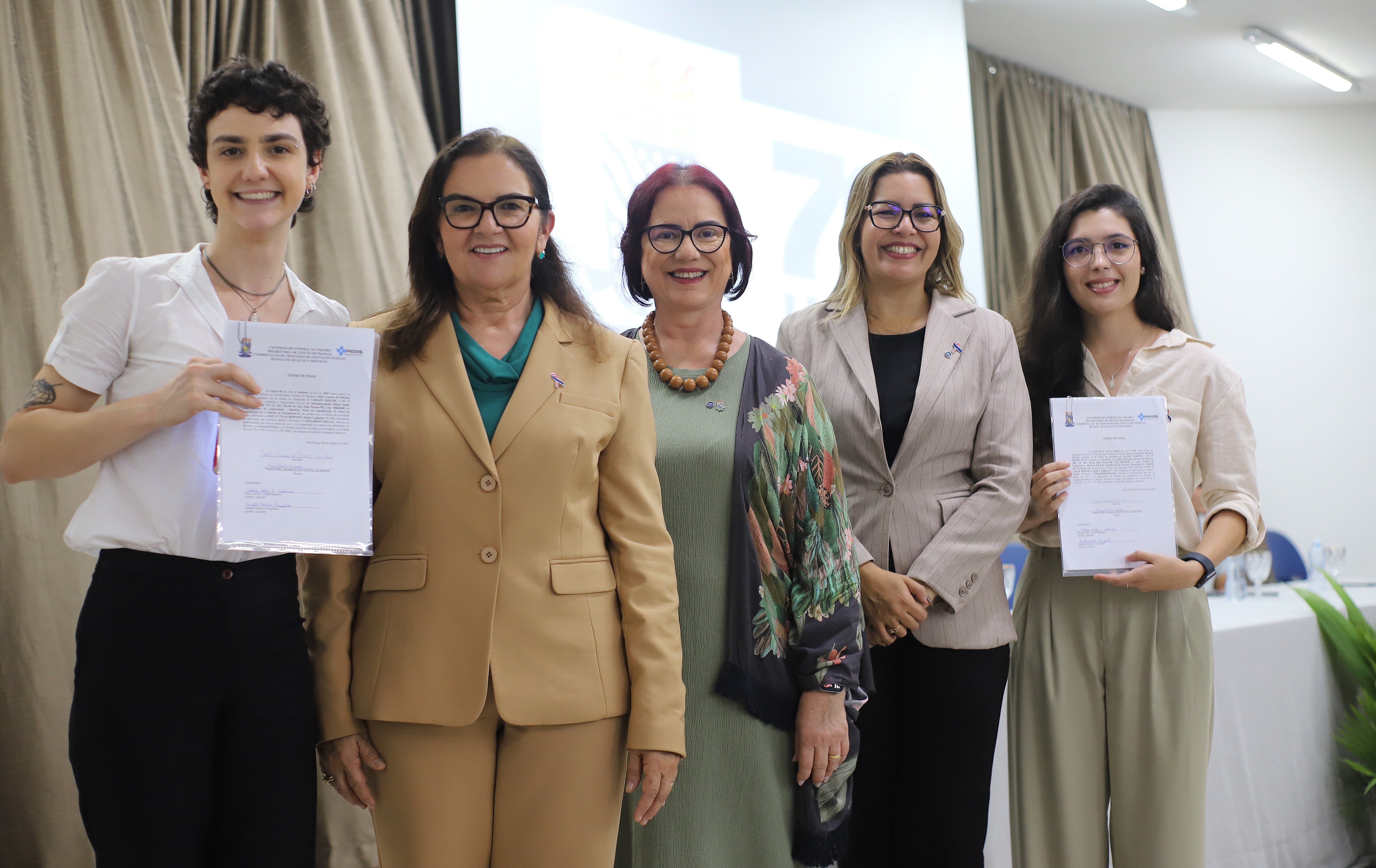 Conduzida pela reitora Terezinha Domiciano, a cerimônia contou com a presença, na mesa da solenidade, da vice-reitora Mônica Nóbrega, da pró-reitora de Gestão de Pessoas (Progep) Mirella Rocha, do superintendente do Hospital Universitário Alexandre Medeiros e do servidor técnico administrativo Átila Bonifácio, representando o Sindicato dos Trabalhadores do Ensino Superior da Paraíba (Sintesp). Também estiveram presentes pró-reitores, diretores de centro e familiares de muitos servidores empossados.
