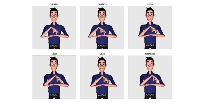 “Foi feita uma adaptação parcial de ferramentas da Suíte VLibras, usando um dicionário resumido, para o qual foram animados sinais para todos esses tipos de emoções identificadas”, explica o Prof. Rostand Costa, orientador do trabalho.
