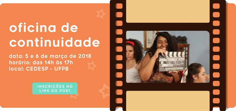 Estão abertas as inscrições para a Oficina Continuidade no Audiovisual promovida pelo Projeto Experiências Criativas na TV que é coordenado pelas Diretoras de Artes Cênicas da TV UFPB, Cely Farias e Valeska Picado.