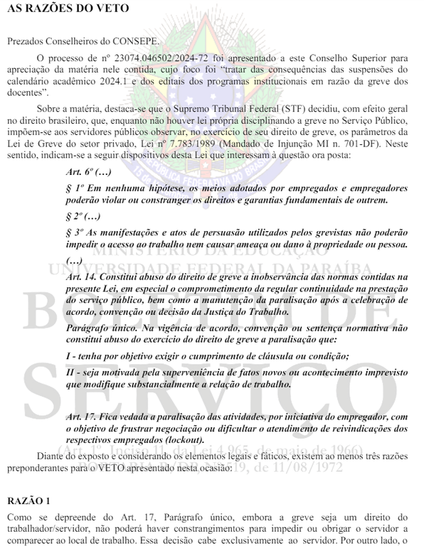 Reitor da UFPB veta decisão do Consepe que suspenderia Calendário Acadêmico do período 2024.1