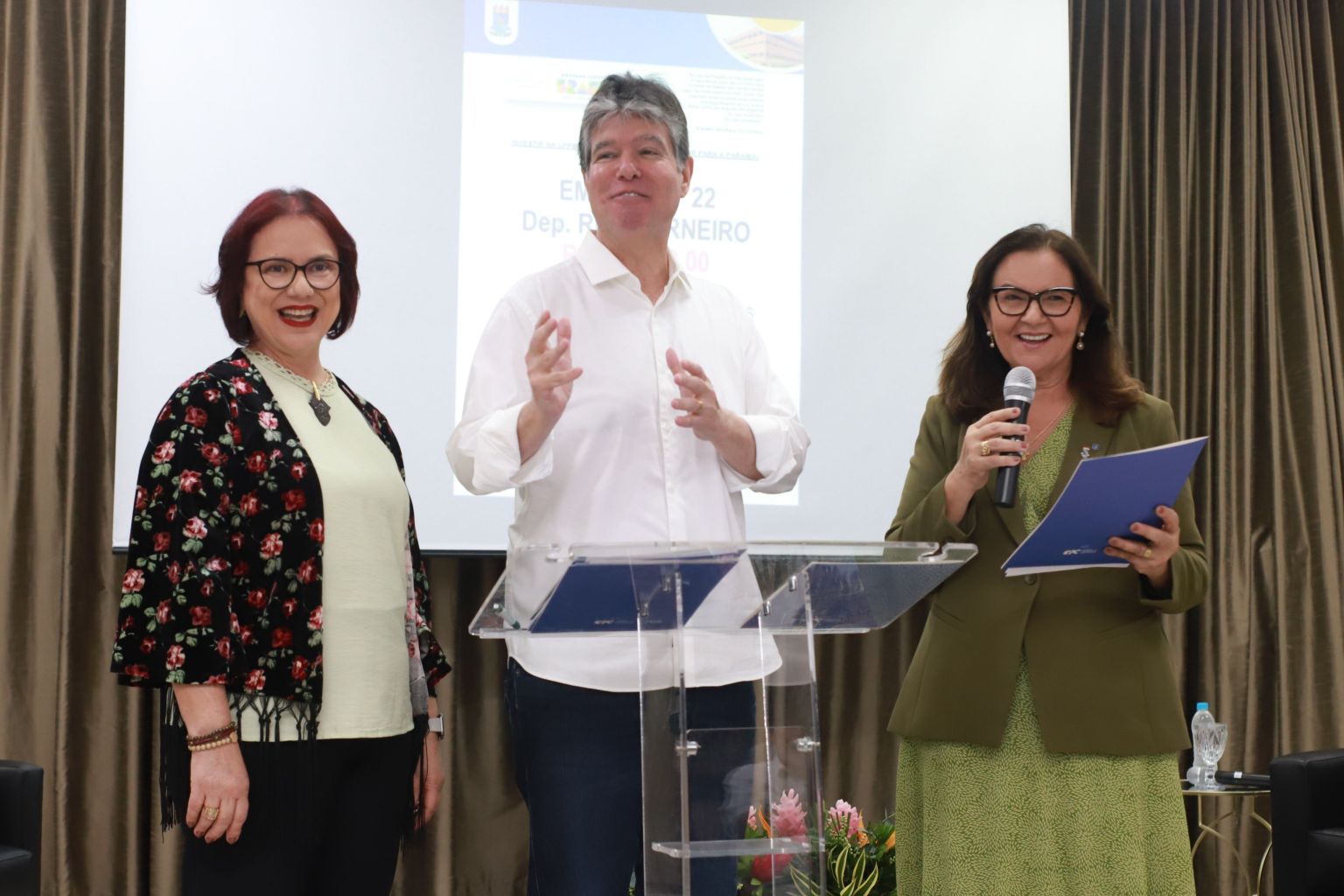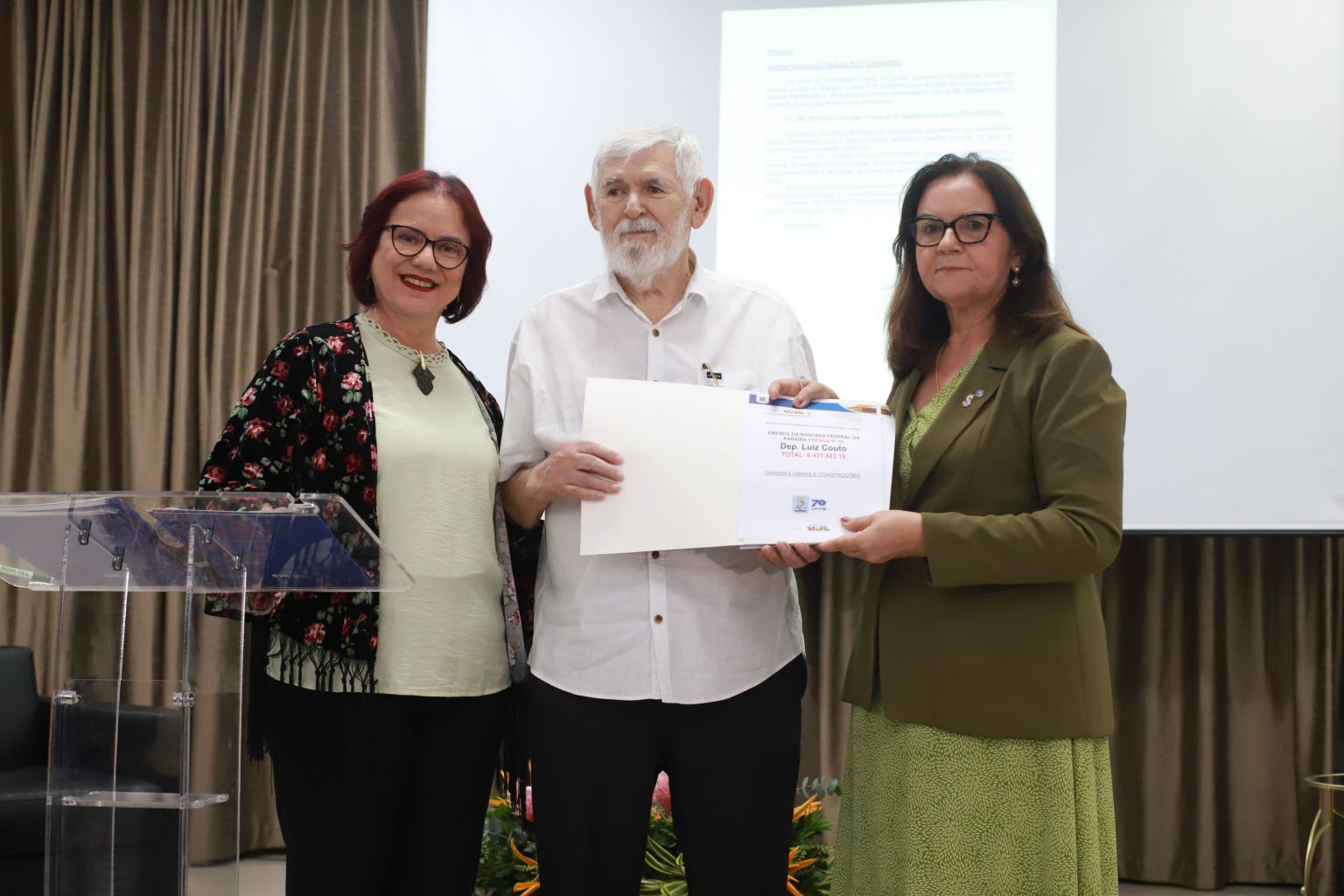 A programação contou ainda com a participação dos deputados federais Luiz Couto, Damião Feliciano e Ruy Carneiro, que destinaram emendas parlamentares à UFPB, além de agradecimentos a outros parlamentares que também contribuíram com recursos para a instituição, como os deputados federais Hugo Motta, Murilo Galdino, Mersinho Lucena e Romero Rodrigues, o senador Efraim Morais Filho e o deputado estadual George Morais. A gestão destacou ainda a parceria com o Governo da Paraíba, e com a Prefeitura Municipal de João Pessoa, representada no evento pelo vice-prefeito Leo Bezerra.
