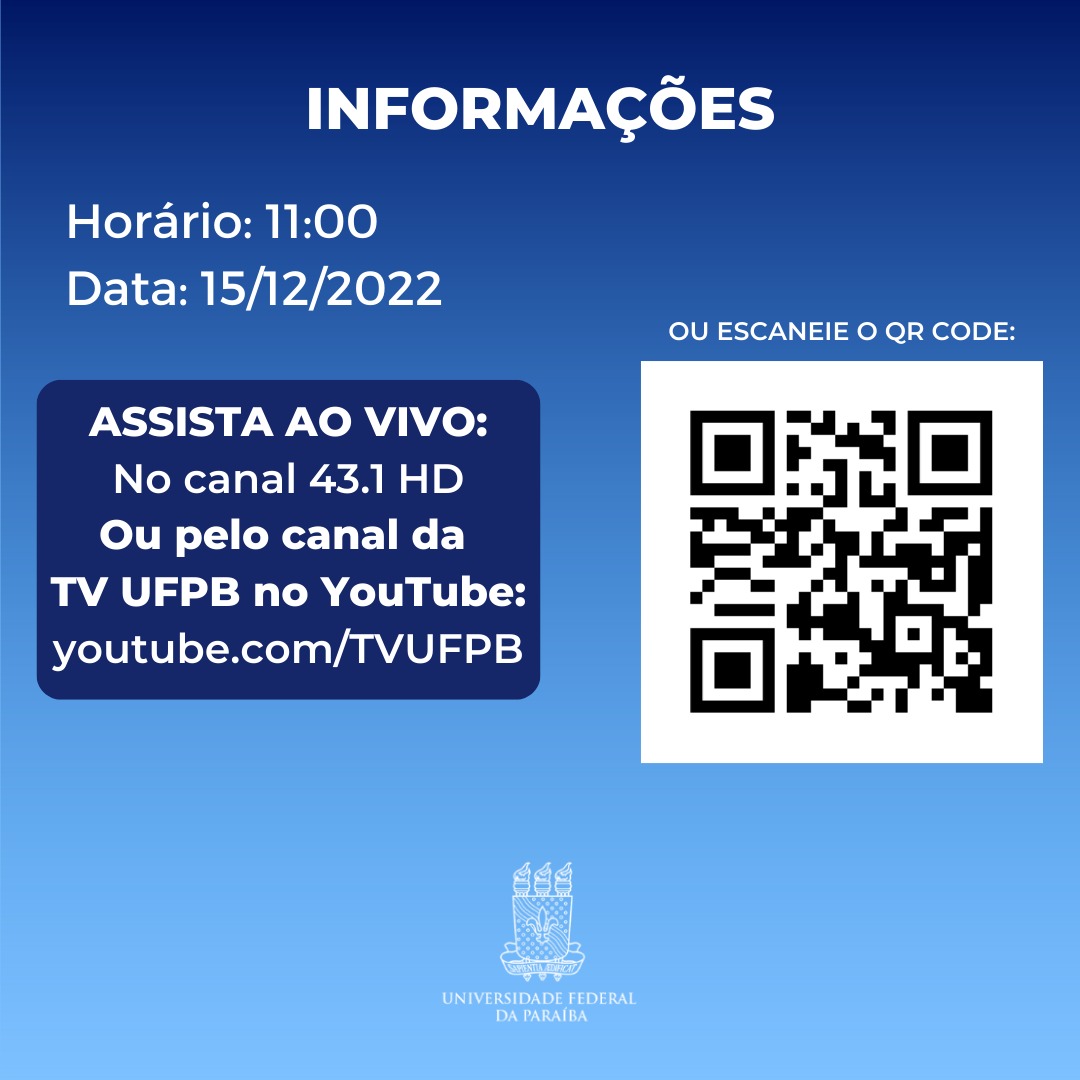 O “UFPB em Dia'' vai ao ar a partir das 11h, com transmissão ao vivo pela TV UFPB no canal 43.1 digital da TV aberta e no canal do YouTube da TV UFPB.