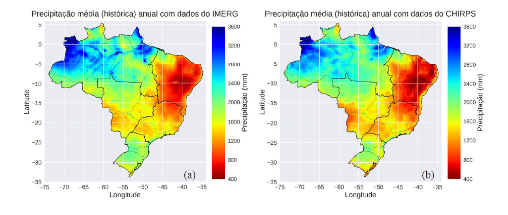 A pesquisa também avaliou a precipitação média histórica, que consiste na soma dos totais anuais observados ao longo de alguns anos. Nela, a região semiárida do Brasil (composta por 1.262 municípios, dos estados do Maranhão, Piauí, Ceará, Rio Grande do Norte, Paraíba, Pernambuco, Alagoas, Sergipe, Bahia e Minas Gerais) é a que possui menores índices pluviométricos.