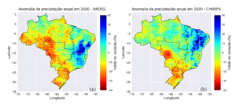 Conforme o levantamento, a região Norte atingiu volumes superiores a 3.000 mm/ano. Já a região Nordeste foi a que apresentou os menores índices pluviométricos, chegando a menos de 500 mm/ano em algumas zonas. O Centro-Oeste e parte do Sudeste do Brasil também apresentaram baixos índices de precipitação em 2020.