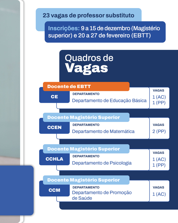 UFPB abre seleções simplificadas para professor substituto do Magistério Superior e do EBTT